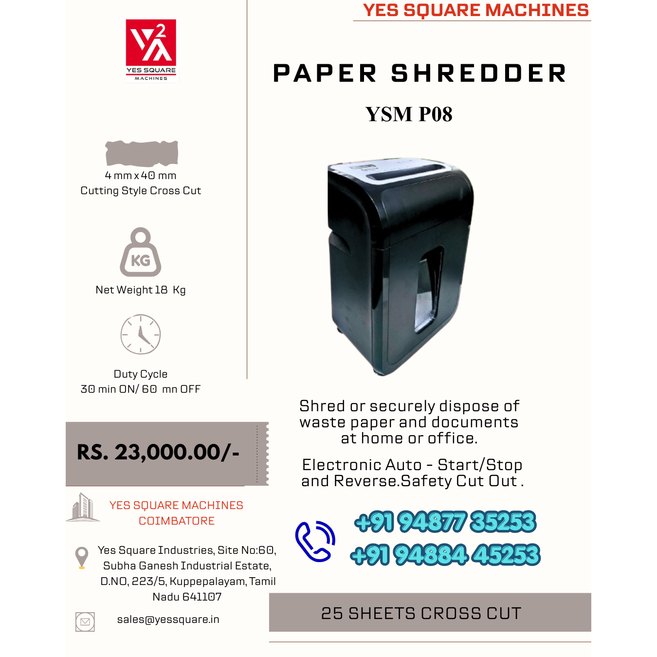 Yes Square Paper Shredder shred or securely dispose of waste paper and documents at home or office.