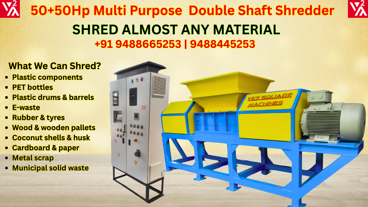 Unleash powerful shredding performance with our 50+50 HP Dual Shaft Sheet Metal Shredder designed for heavy-duty industrial applications. This machine efficiently shreds sheet metal, light to medium metal scrap, aluminum sheets, mild steel scrap, auto body parts, and fabrication waste into uniformly sized pieces.