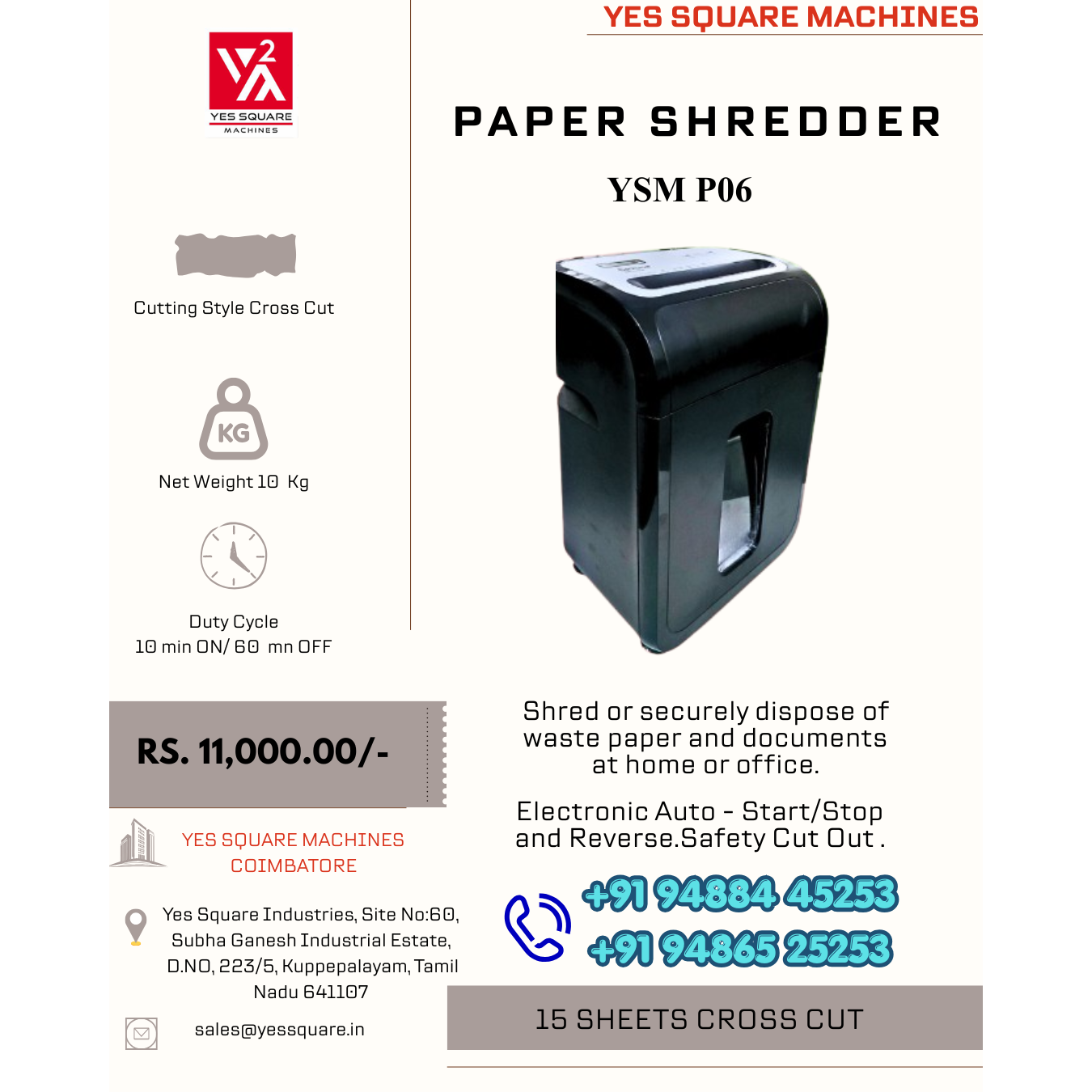 Yes Square Paper Shredder shred or securely dispose of waste paper and documents at home or office.