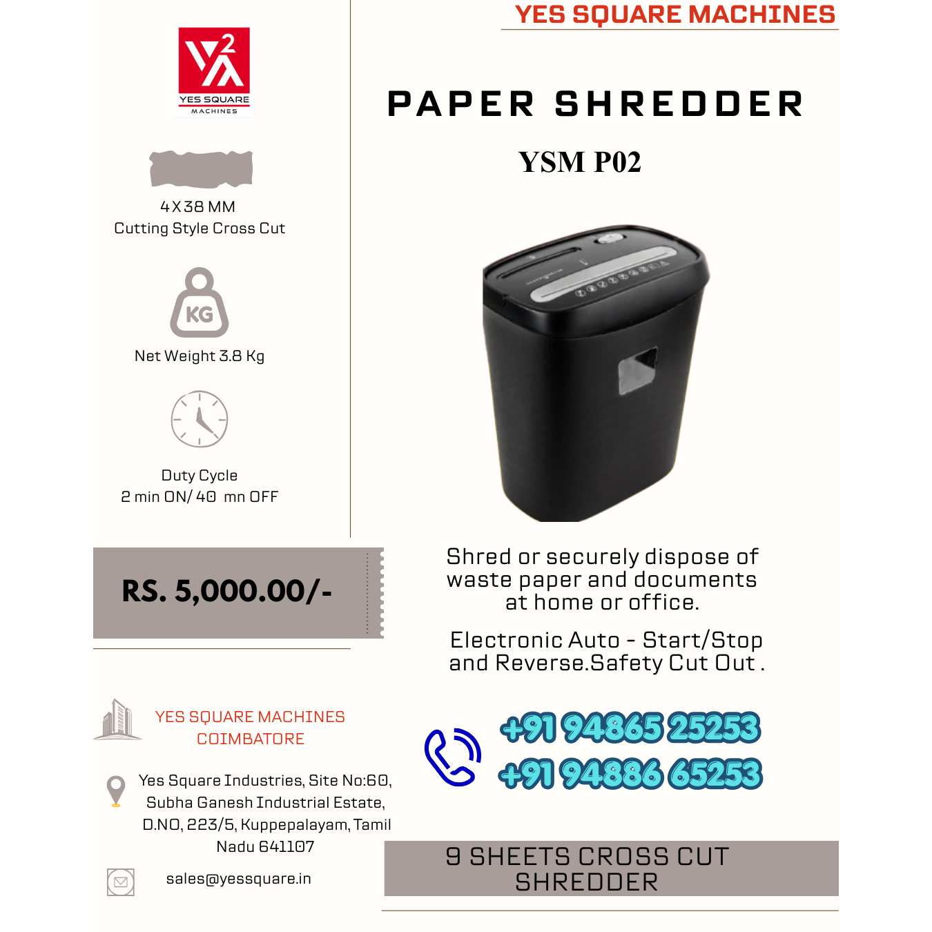 Yes Square Paper Shredder shred or securely dispose of waste paper and documents at home or office.