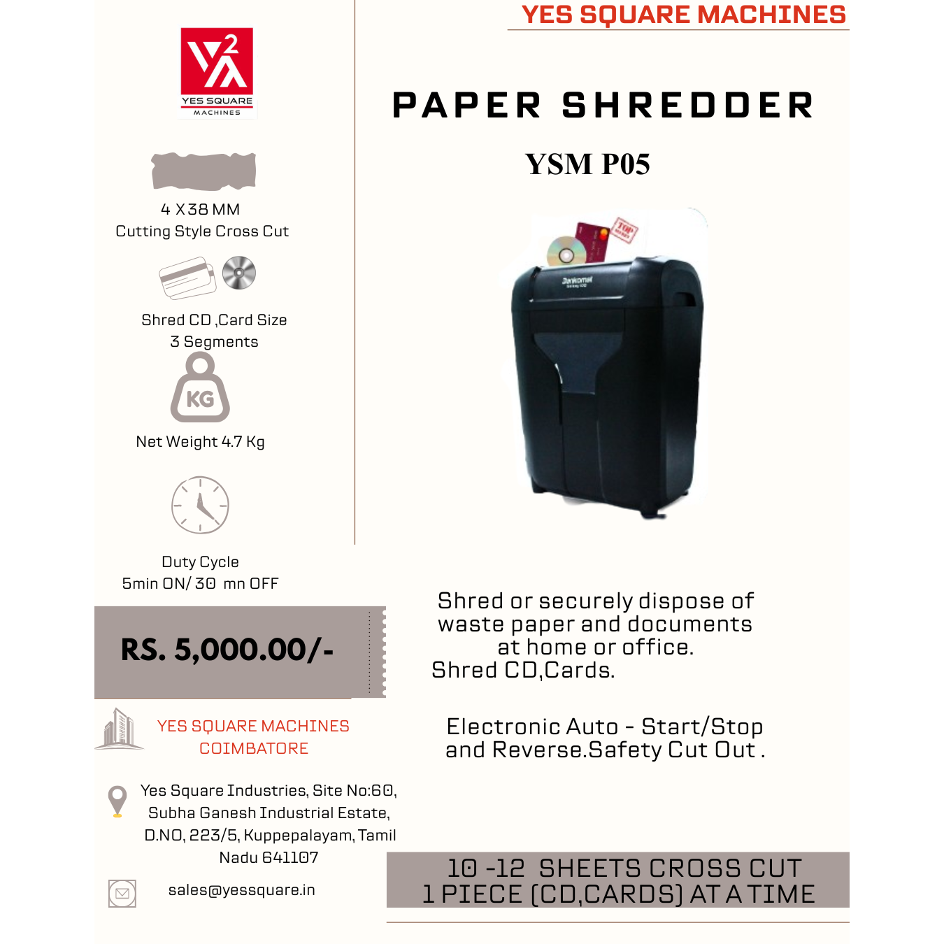 Our Small Size Paper Shredder Machine is designed for efficient and secure paper shredding in offices, schools, banks, and small industries. The compact design saves space while delivering powerful performance.