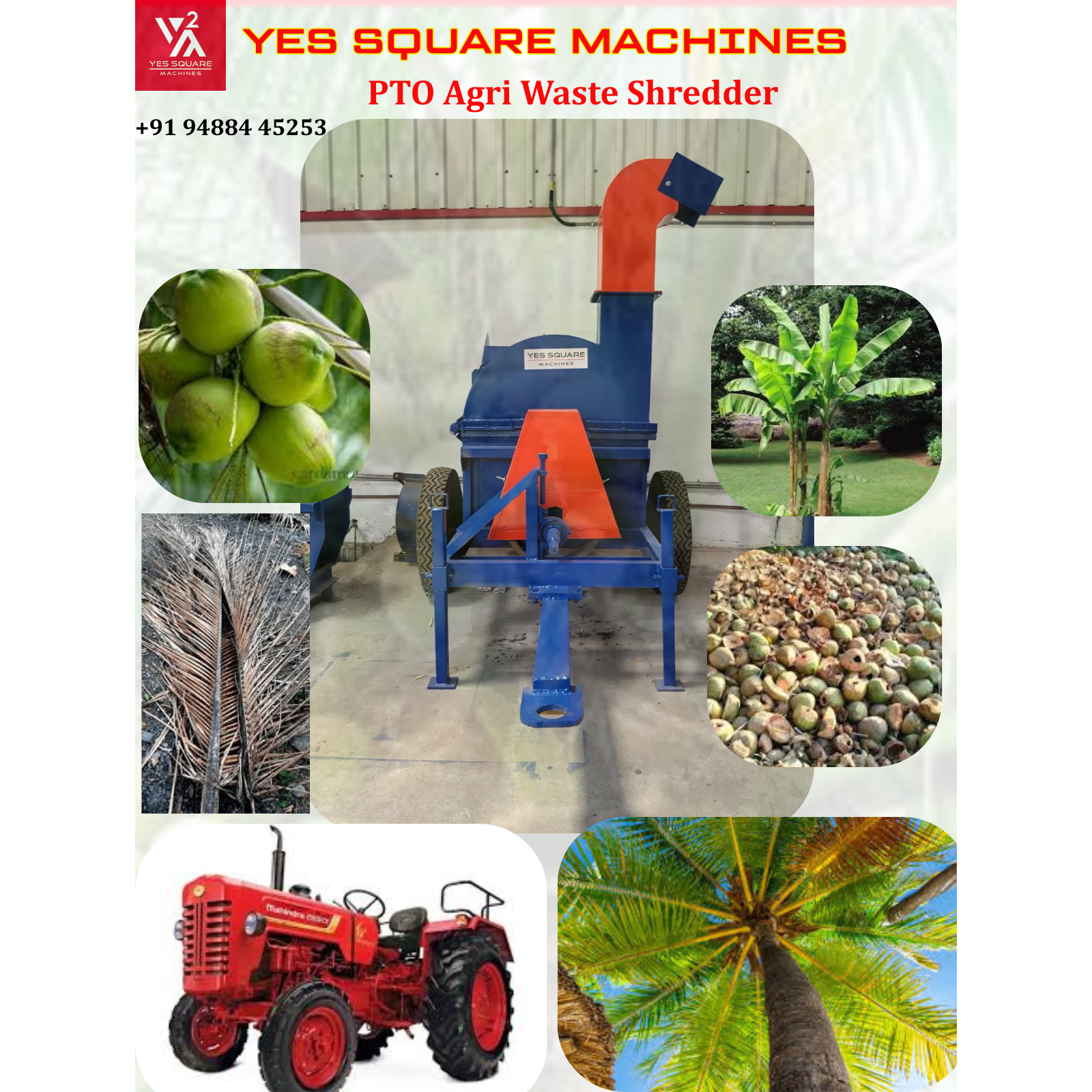 Manufactured by Yes Square Machines, Coimbatore, this machine is powered by tractor PTO and ensures high output with low maintenance. Suitable for organic farms, composting units, and recycling applications.